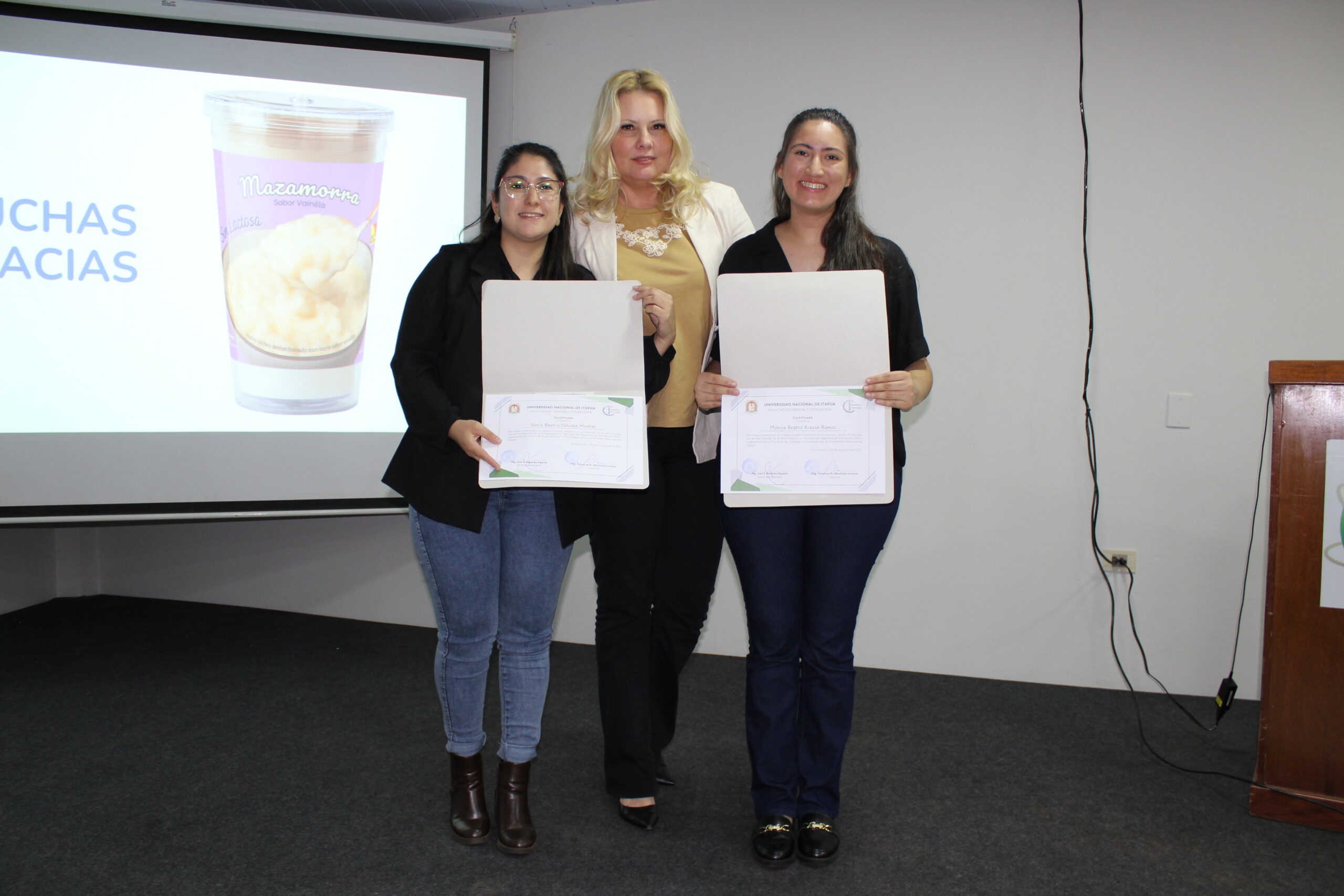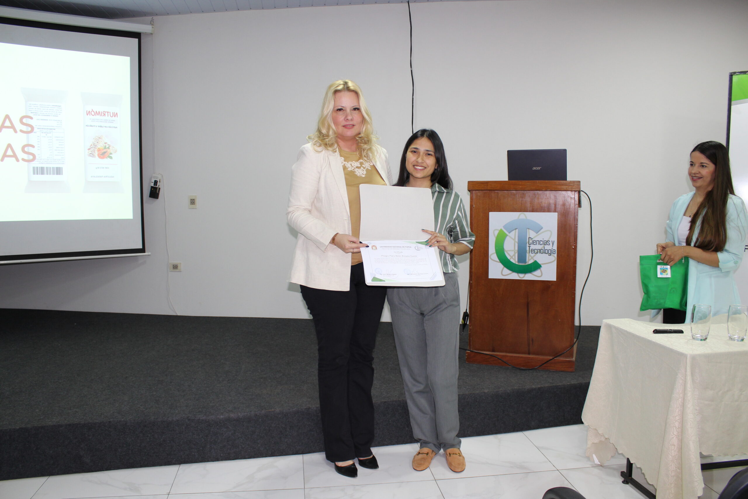 Seguidamente fueron presentados trabajos académicos desarrollados en el marco de la asignatura Innovación de Productos Alimenticios de la carrera de Ingeniería en Alimentos: