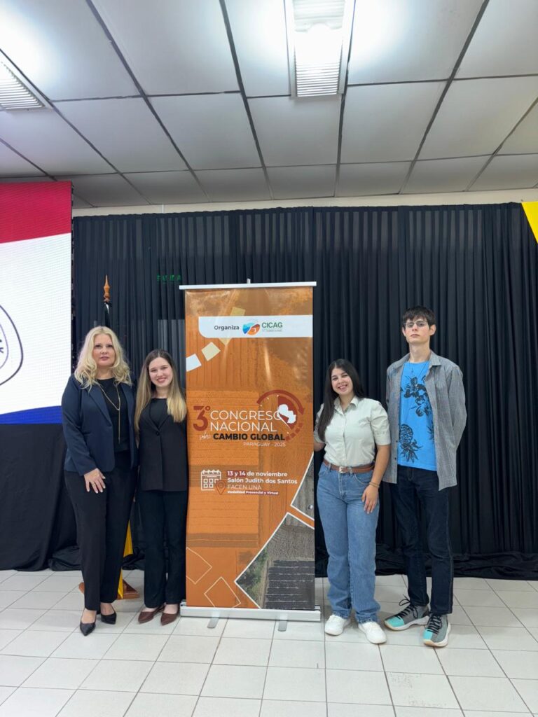 El jueves 13 de noviembre, la Vicedecana Mg. Soledad Rosner acompañó a estudiantes de la carrera de Ingeniería Ambiental de la FaCyT al III Congreso Nacional sobre Cambio Global, realizado en el Salón Judit Dos Santos de la Facultad de Ciencias Exactas y Naturales de la Universidad Nacional de Asunción.