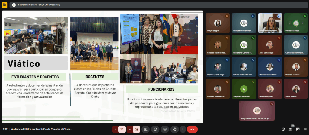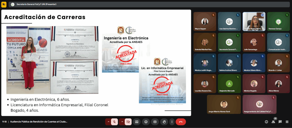 La Audiencia Pública de Rendición de Cuentas al Ciudadano 2025 de la Facultad de Ciencias y Tecnología de la Universidad Nacional de Itapúa se realizó esta mañana, en modalidad virtual.