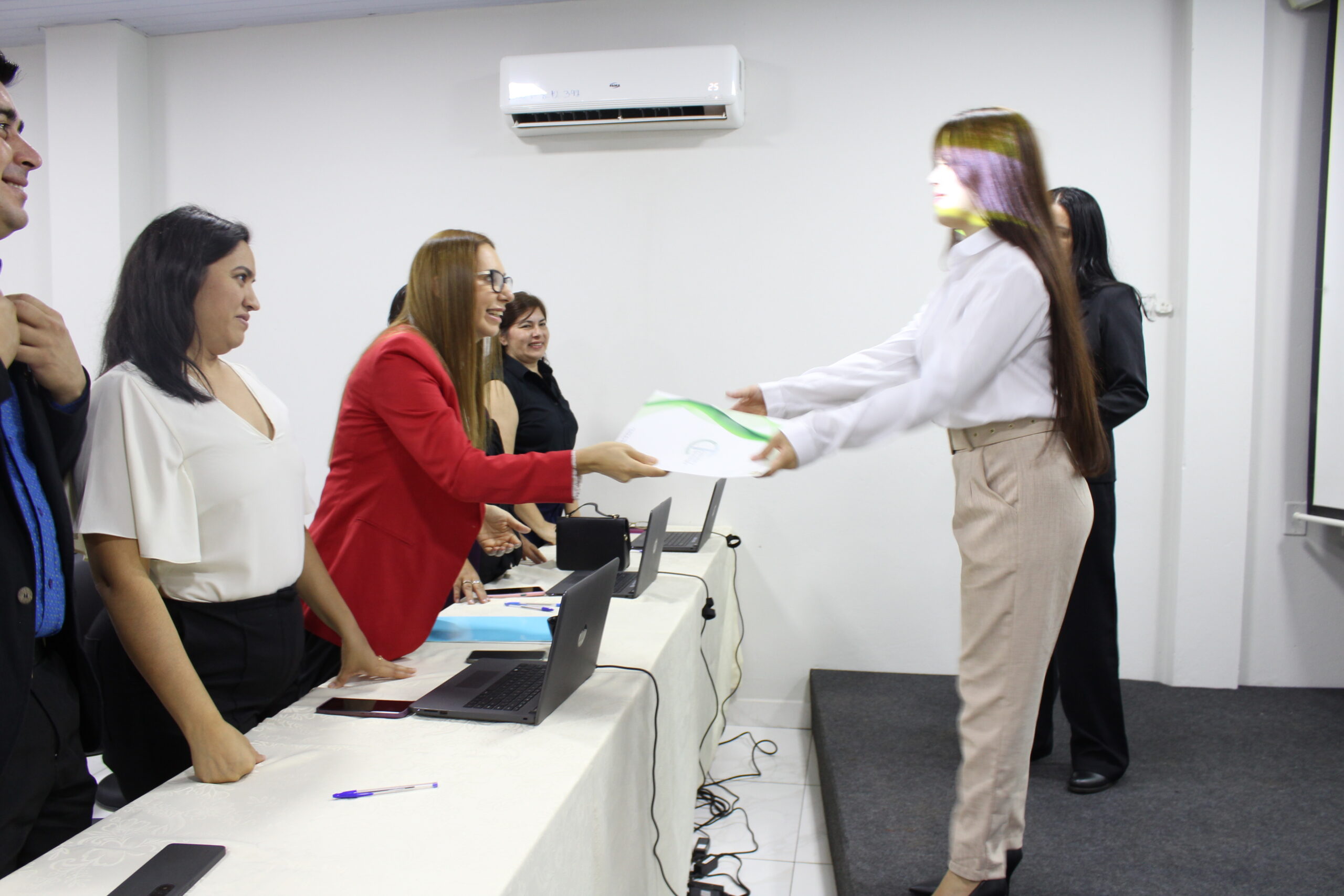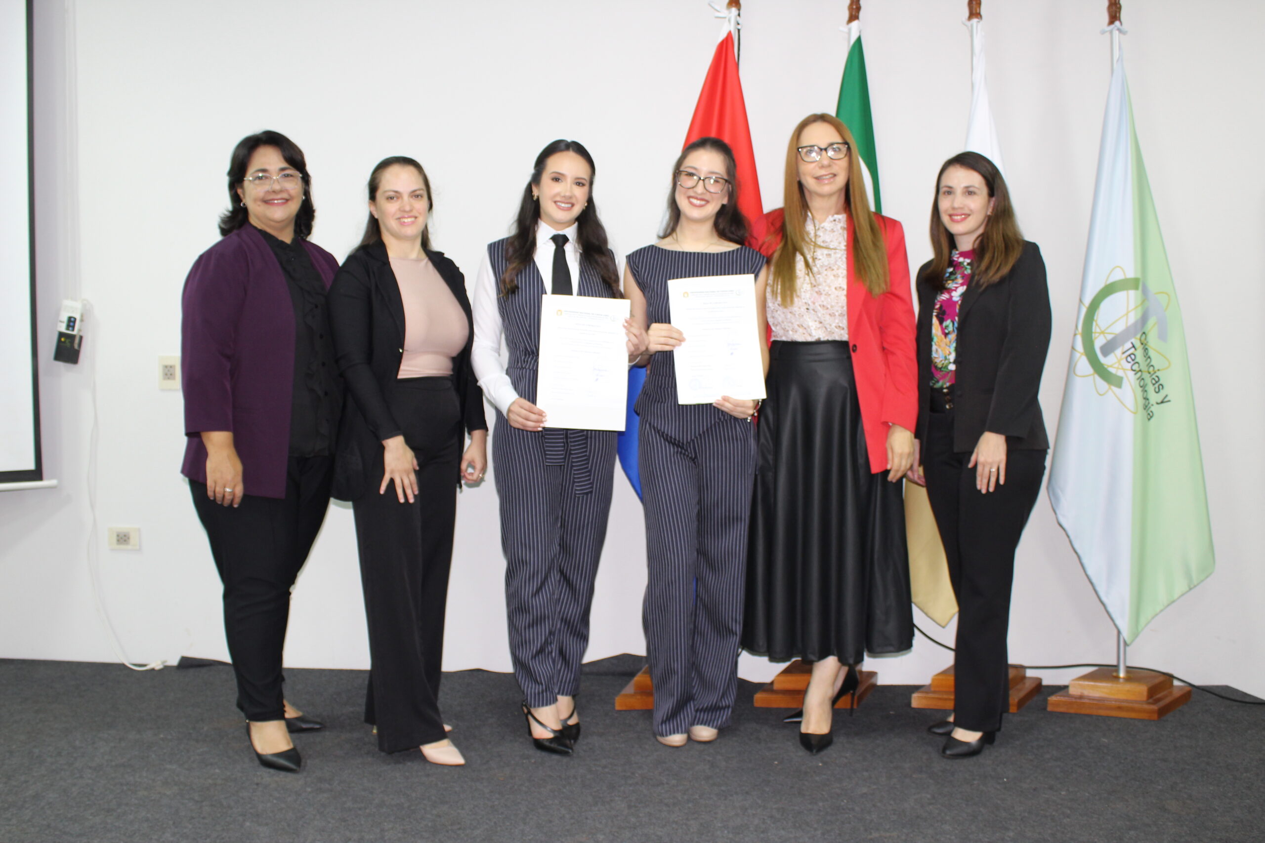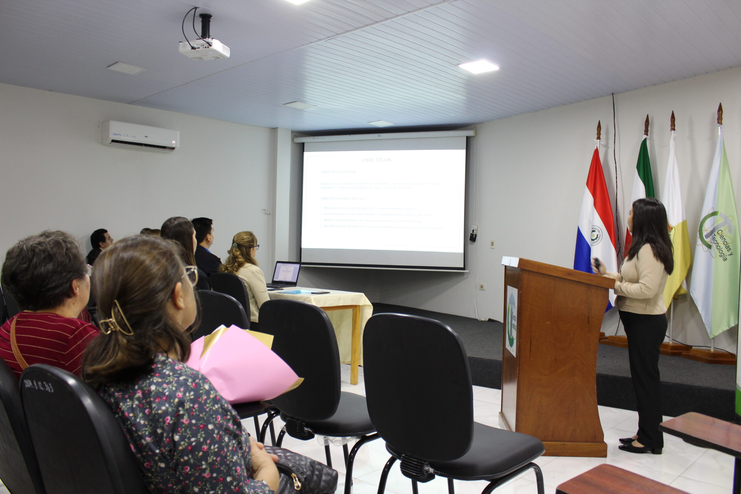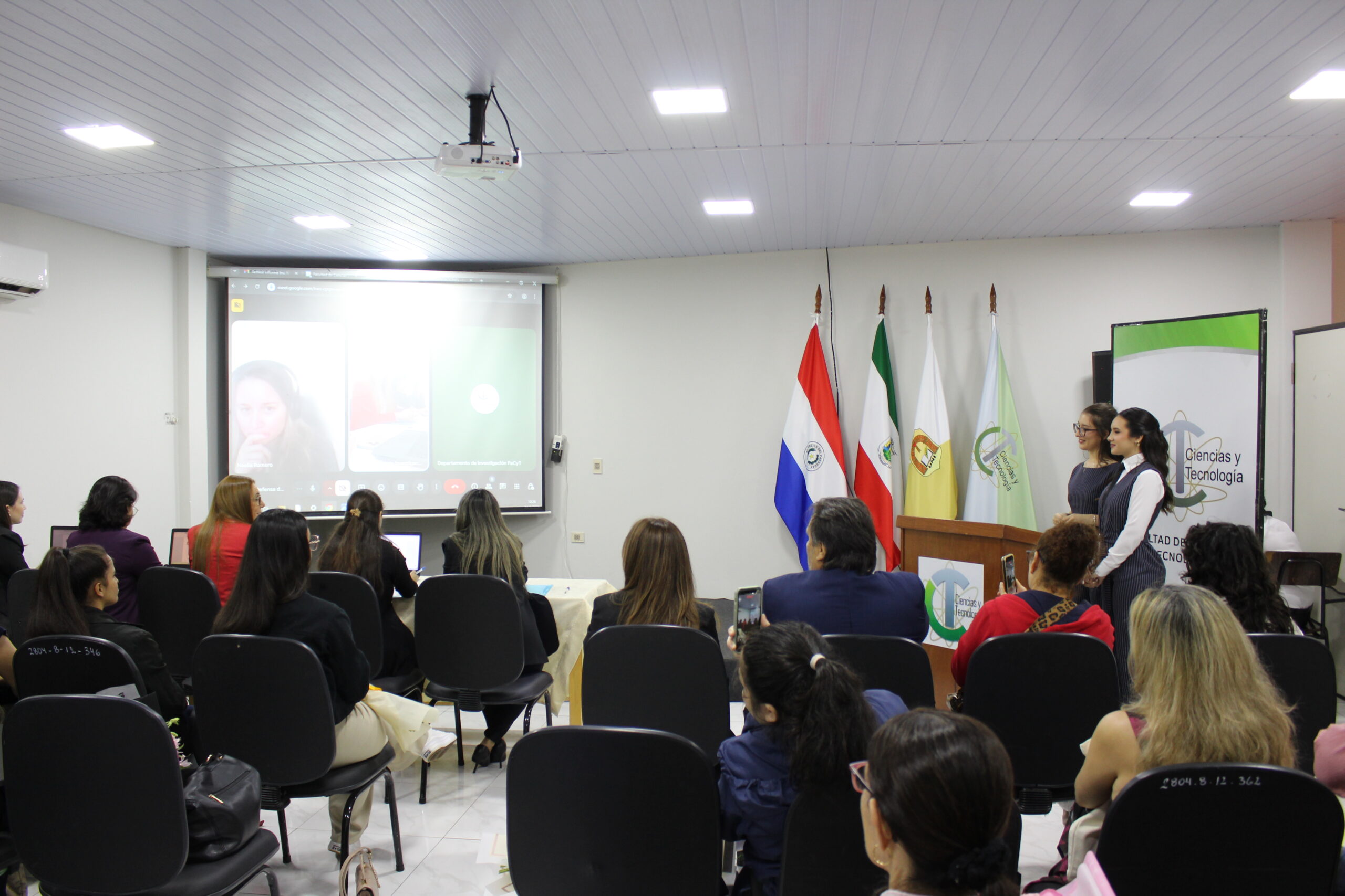 El evento contó con la presencia de la Mg. Patricia Noemí Martínez Lovera, Decana de la Facultad; la Dra. Mónica Judith Bogado, Directora de Investigación y Extensión; la Ing. Fátima Villasanti Sánchez, encargada del Departamento de Investigación; y la Mg. Patricia Silveyra, Coordinadora de Investigación. Asimismo, participaron miembros del Tribunal Calificador, docentes, familiares y amigos de los estudiantes, quienes acompañaron este importante hito académico.